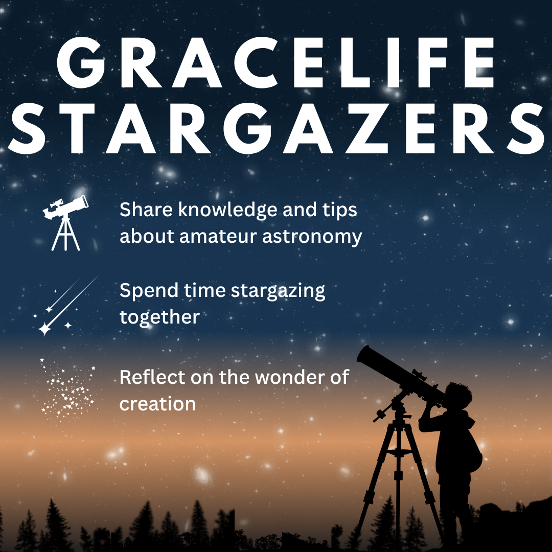 Gracelife Stargazers is a group dedicated to exploring God’s creation in the night sky, utilising telescopes or binoculars to enhance our ability to see and understand it. We meet at least once a fortnight at the Malaga hub unless notified beforehand. As stargazing is dependent on clear skies, any wet weather or clouds will mean a possible cancellation. A WhatsApp group will facilitate appropriate communication.